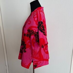 Elevate your wardrobe with this vibrant red and black women's top. Perfect for any occasion, this stylish piece adds a pop of color to your outfit.