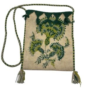 Vintage Greek Handwoven Tagari Shoulder Crossbody Bag Tote Boho Hippie 100% Wool