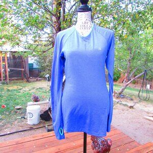 Stylish long sleeve tee. Features vibrant blue color. Comfortable fit. Perfect for casual wear.