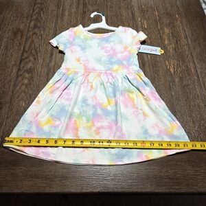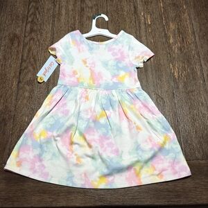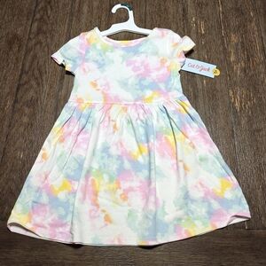 bundle of Adorable toddlers dresses with a vibrant tie-dye pattern. Features a mix of pastel colors.