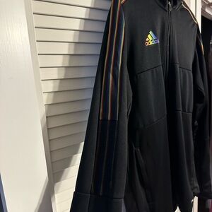 Adidas Men's Black Performance Jacket with Rainbow Accents