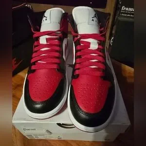 The women’s Air Jordan 1 Mid “Alternate Bred Toe” revamps the classic Chicago Bulls-inspired colorway with a fresh twist. Crafted with a premium leather upper, it features white quarter panels, black overlays, and a bold red toe box. Iconic Jordan branding includes the Wings logo on the ankle and Jumpman on the tongue. The rubber cupsole houses encapsulated Air cushioning in the heel for comfort and everyday wear.