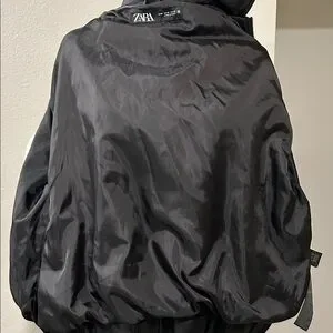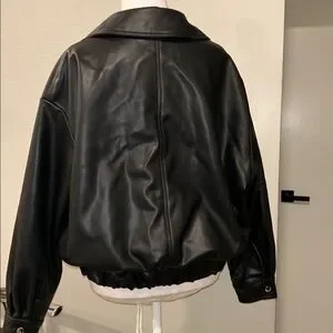 ZARA NWT Faux Leather Bomber Jacket Black Medium Oversized Zipper Closure