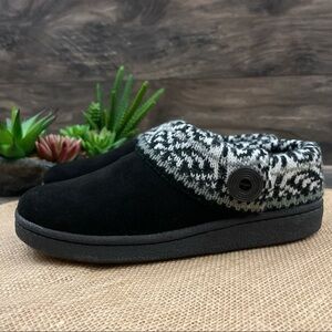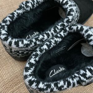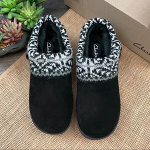 NIB Clarks Fair Isle Knit Cuff Faux Fur Indoor Outdoor Slippers