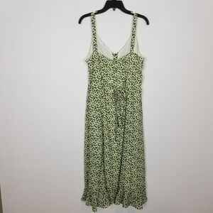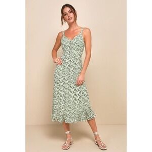 Lulu's Women Darling Daisies Green Floral Print Midi Dress Sz XL Summer Party