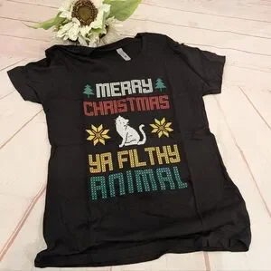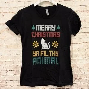SALE NWT Merry Christmas Ya Filthy Animal Cat Graphic T-Shirt
