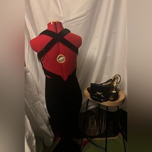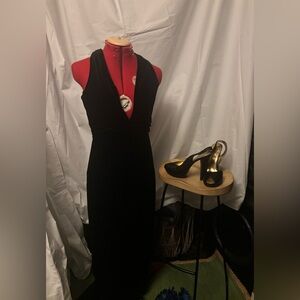 ✨ Revelry Black Velvet Halter Gown – Size 8 Open-Back Floor-Length
