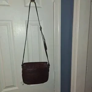 This stylish Aigner burgundy leather crossbody bag is perfect for any occasion. Its sleek design and rich color make it a versatile accessory for your wardrobe.
