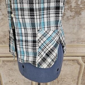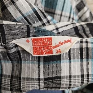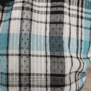 Vintage 1960s Seersucker Blouse Swiss Dot Sheer Blue Teal Black Rockabilly