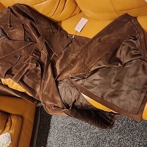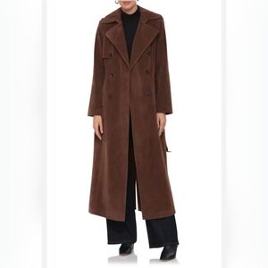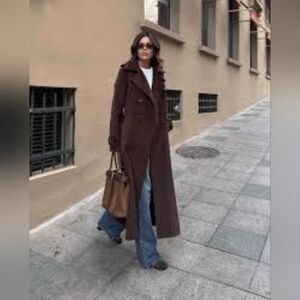 Stay warm and stylish with this elegant brown double-breasted coat. Perfect for any occasion, this coat offers both comfort and sophistication.