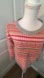 Chic knit sweater with vibrant stripes. Features shades of pink, red, and gray. Perfect for stylish layering.