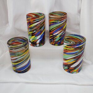 Hand Blown Mexican Glasses – 4 Confetti Swirl Drinking Tumbler Glasses
