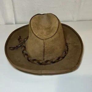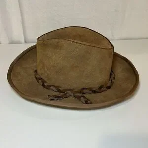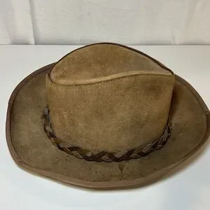 Vtg Henschel Skullys Braid Suede Hat LG Cowhide Leather Outback Bush USA Cowboy