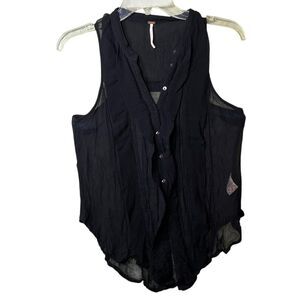 Free People Blouse Womens Medium Black Ruffle Button Front Sleeveless Boho Gauze