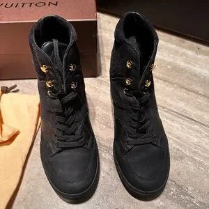 Louis Vuitton Women’s Black Monogram High Top Sneakers Size 35