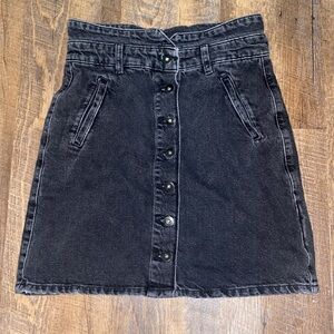 Elevate your style with this chic black denim skirt. Featuring a classic button-front design, it's perfect for any occasion.