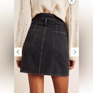PILCRO FOR ANTHROPOLOGIE BUTTON FRONT HIGH WAISTED MINI SKIRT WASHED BLACK DENIM