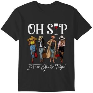 Sips And Trips Oh Sip It's A Girls Trip Fun Wine Party Black T-Shirt