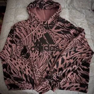 Eye-catching Adidas hoodie with animal print design. Features prominent logo on front. Only worn three times. There are no stains, or rips, it is kept in a smoke free home. It has never been put in the dryer it has only been hang dried. Size 1x. No returns.