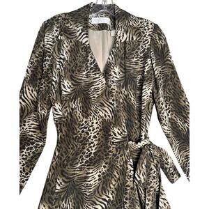 Vtg Dana Buchman 90s Y2K Women's 100% Silk Animal Print Wrap Dress Sz 4 Mob Wife