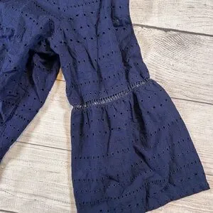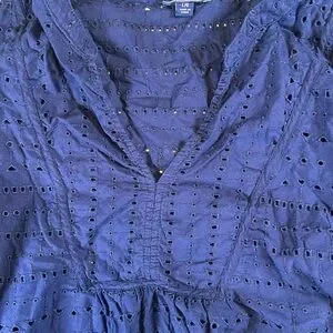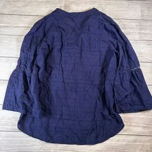 Chic navy blouse by Izod. Features eyelet design and flared sleeves. Perfect for versatile styling. IZOD Women’s Eyelet Embroidery Hemstitch Boho Blouse