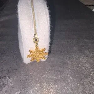 Chic tweed pouch bag /cosmetics bag.with metallic threads details.Gold tone accents. 7.5"X5"X2.5"