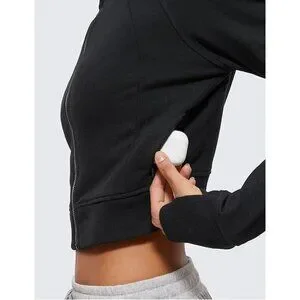 CRZ YOGA Women's Fleece Lined Zip Up Cropped Hoodie - Long Sleeve with Thumbhole