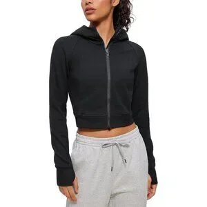 The CRZ YOGA Women's Fleece Lined Zip Up Cropped Hoodie in Black, size XL, offers cozy comfort with a stylish cropped design. Made from Cotton, Modal, and Elastane, it features long sleeves with thumbholes for added warmth.