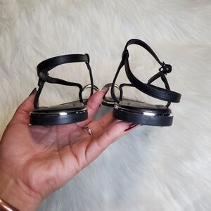 Chic black sandals with sleek design. Ideal for versatile wear. Comfortable and stylish.