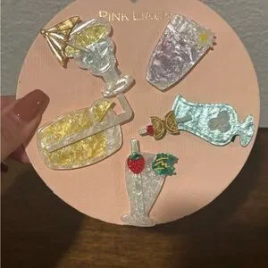 Pink Linen Vibrant Cocktail Hair Clip Set