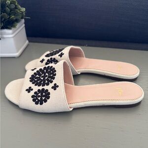 J. Crew Women’s Embroidered Cora Tan And Black Bohemian Slide Sandals Size 9.5