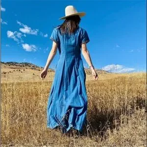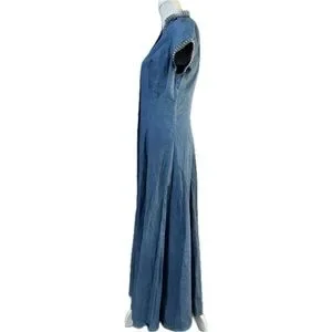 DOUBLE D RANCH Vintage Chambray Denim MaxiDress Duster Silver Concho Studs Sz S