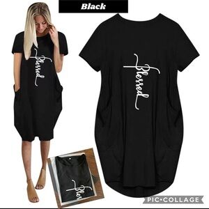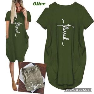 Cute! Loungewear or Night T-Shirts. Has short sleeves & side pockets. All have the word, “Blessed”. This listing Olive & Pink. (Black & Yellow-separate listing). All stop at knee or below. Cotton