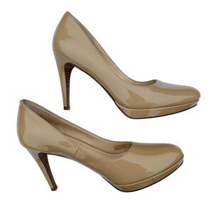 Cole Haan Nike Air Pumps Heels Nude Tan Patent Leather Platform Size 7.5 AA