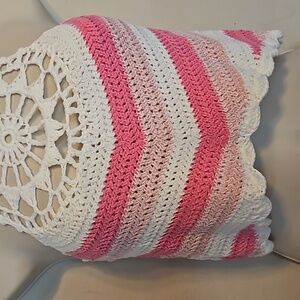 Hand Crafted Crochet Halter Crop Top Floral Granny Square Pink White One Size