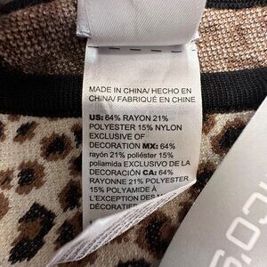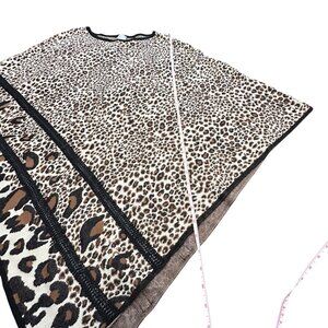 Chico's Poncho L/XL NWT Tan Brown Black Cheetah Trim Sweater Animal Print