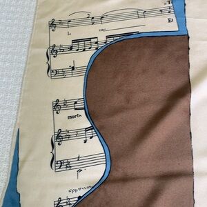 Pichio silk scarf music notes, piano, sheet music print blue brown and cream
