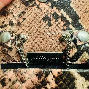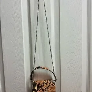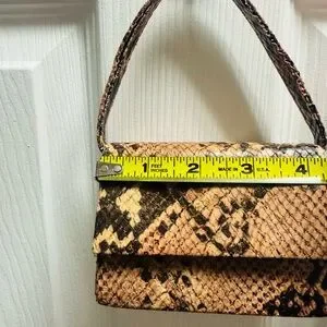 Elevate your style with this chic snakeskin pattern bag. Featuring a sophisticated tan and black design, this bag is perfect for any occasion.