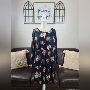 Torrid Black Floral Stretch Challis Mini A-Line Dress Plus Size 1X Spring Summer