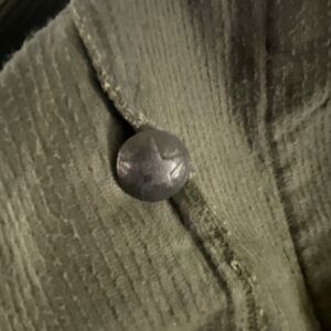 The FLAX by Jeanne Engelhart Green Wide Whale Corduroy Chore Utility Coat is a stylish and practical outerwear piece designed for women. Made from 100% cotton corduroy fabric, this mid-length coat features a solid green color with a collared neckline, long sleeves, and button closure. Perfect for travel, casual wear, or workwear, this coat is machine washable and has a regular fit. With its pockets accents, soft shell, and breathable fabric, this coat is ideal for the winter, fall, and spring seasons, adding a touch of Y2K, Lagenlook, or grunge style to your wardrobe.