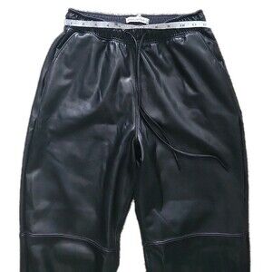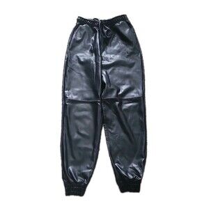 The Abercrombie & Fitch Jogger Pant in Women's XS size is a stylish and versatile option for casual wear. Made from vegan leather, these high-waisted pants feature a drawstring closure, pleated accents, and a tapered leg style. The black color and solid pattern make them easy to pair with a variety of outfits, while the comfort and stretch of the fabric ensure a comfortable fit. Perfect for any season, these jogger pants are a chic addition to any wardrobe, whether for a party, casual outing, or formal event.