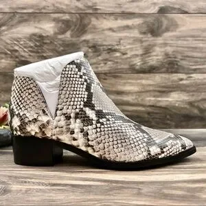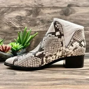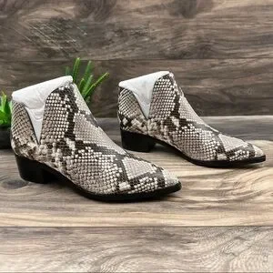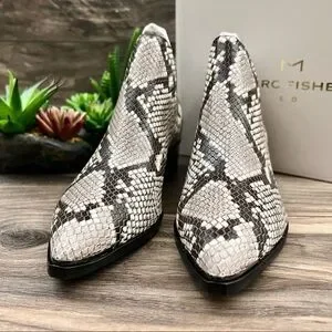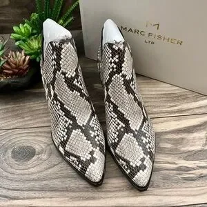 NIB Marc Fisher Yilda Notched Western Leather Ankle Bootie Black Snake Multi 8M