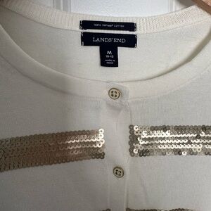 Elegant cardigan featuring shimmering gold sequins. Ideal for a touch of glamour.