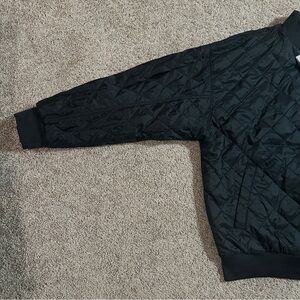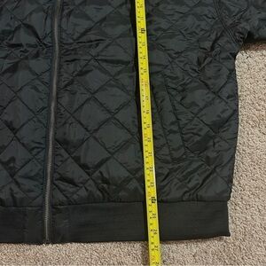 Ruched stitching on the sleeves, ribbed details and a utility pocket on the left arm give 1 side a traditional bomber look. Diamond quilting on the other side feels soft and warm as a liner and gives you a cozier look when worn reversed. Both sides feature snap hand pockets to keep your items.
