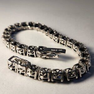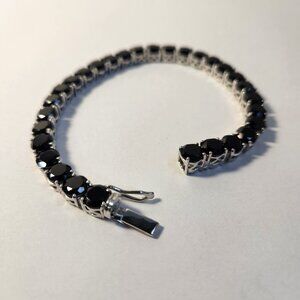 Retro 13.00ctw 925 Solid Silver Natural Black Spinel Tennis Bracelet 8" 20.10g