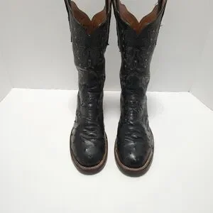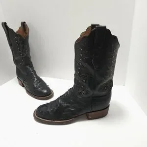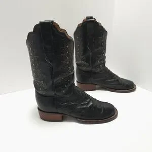 Lucchese 2000 Womens Ostrich Cowboy Boots Size 8.5 B Black Exotic