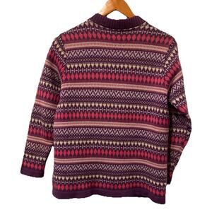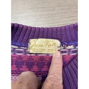 Size based on measurements as no size tag. Also a few small stains as shown. The bottom button is a bit rough to the feel. The Avon Knit Women's 100% Pure Wool Purple Button Front Cardigan in size medium is a stylish and cozy piece perfect for the colder seasons. Made in Canada, this cardigan features a multicolor design, with a regular fit and long sleeves. The button front accents add a detail to this classic sweater, making it a versatile option for casual occasions during the winter, fall, or spring seasons. Crafted from high-quality wool knit fabric, this cardigan is a lovely addition to any woman's clothing collection