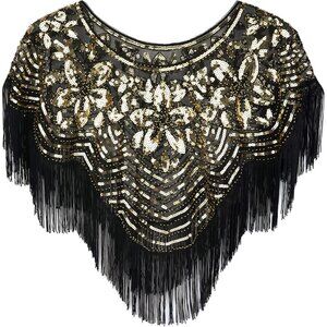 Women's Black Gold 1920s Shawl Sequin Beaded Art Evening Cape Tassel Shawls