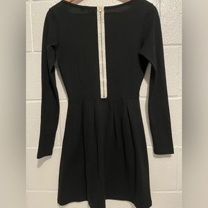 Lacoste LIVE Womens Dress Black Stretch Long Sleeve Pleated Shift Sz S
