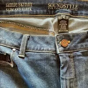 Women's 16 Sound Style Jamie Skinny Jeans cotton spandex stretch tapered leg. Experience comfort and style with the Jamie Skinny Jeans. These sleek blue jeans are perfect for any occasion. 35” waist. 28.5” inseam
